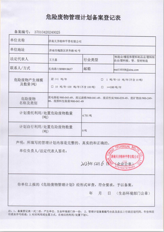 济南天齐特种平带有限公司